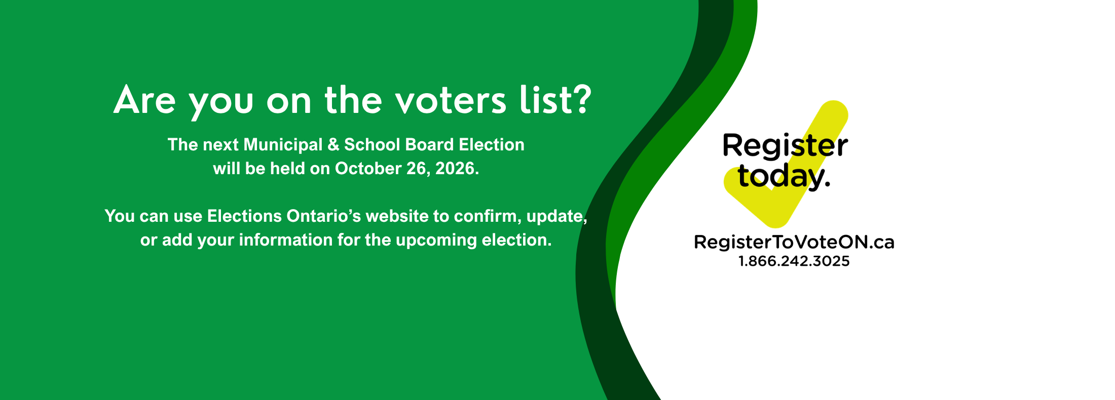 To register and/or confirm your information visit the Elections Ontario Portal at www.registertovoteon.ca.