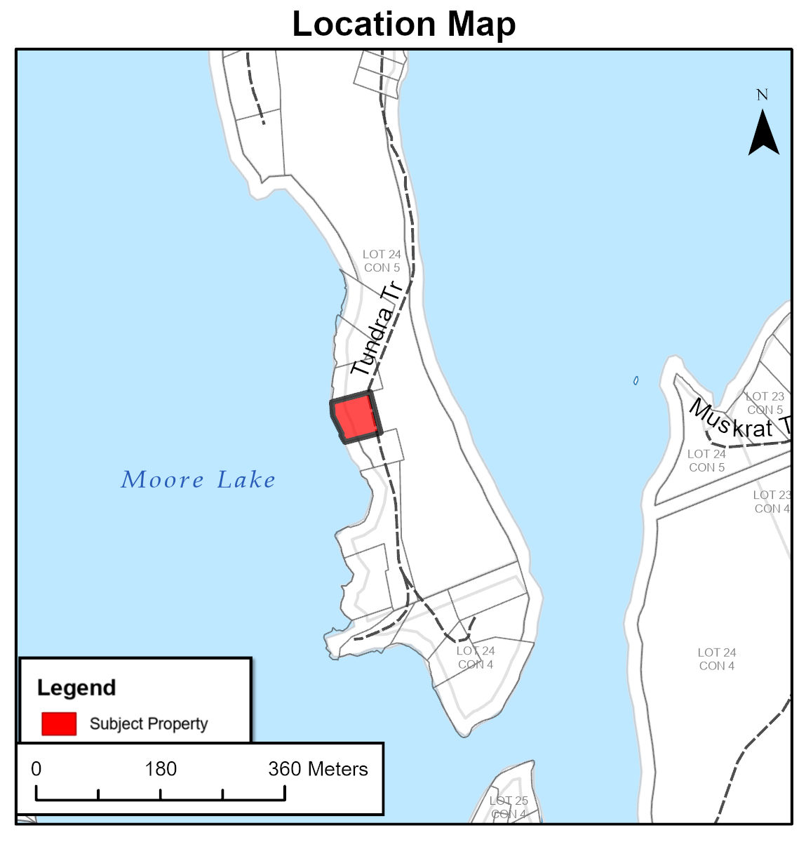 The subject property is currently zoned ‘Rural (RU)’ and is located primarily within the Waterfront and Rural designation of the Township’s Official Plan.
