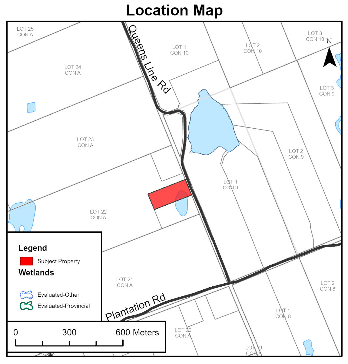 The lands subject to the amending by-law are located in Part Lot 22, Concession A, Geographic Township of Minden, and municipally known as 1125 Queens Line Road, as shown in the key map.