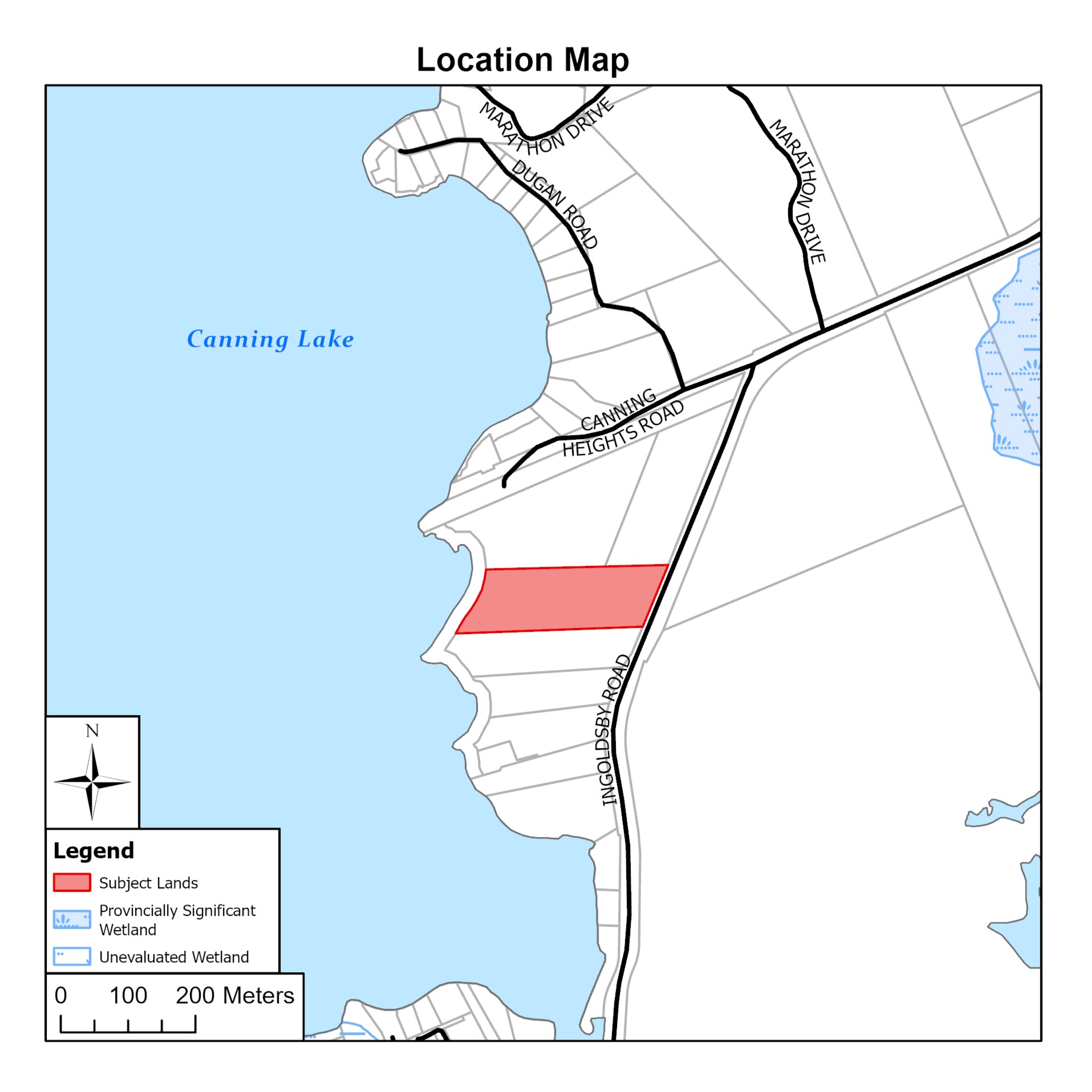 - File No. PLSRA2024014: Part of the original shore road allowance along the shore of Canning Lake, lying in front of 1237 Ingoldsby Road located within Part Lot 16, Concession 14, Geographic Township of Snowdon.