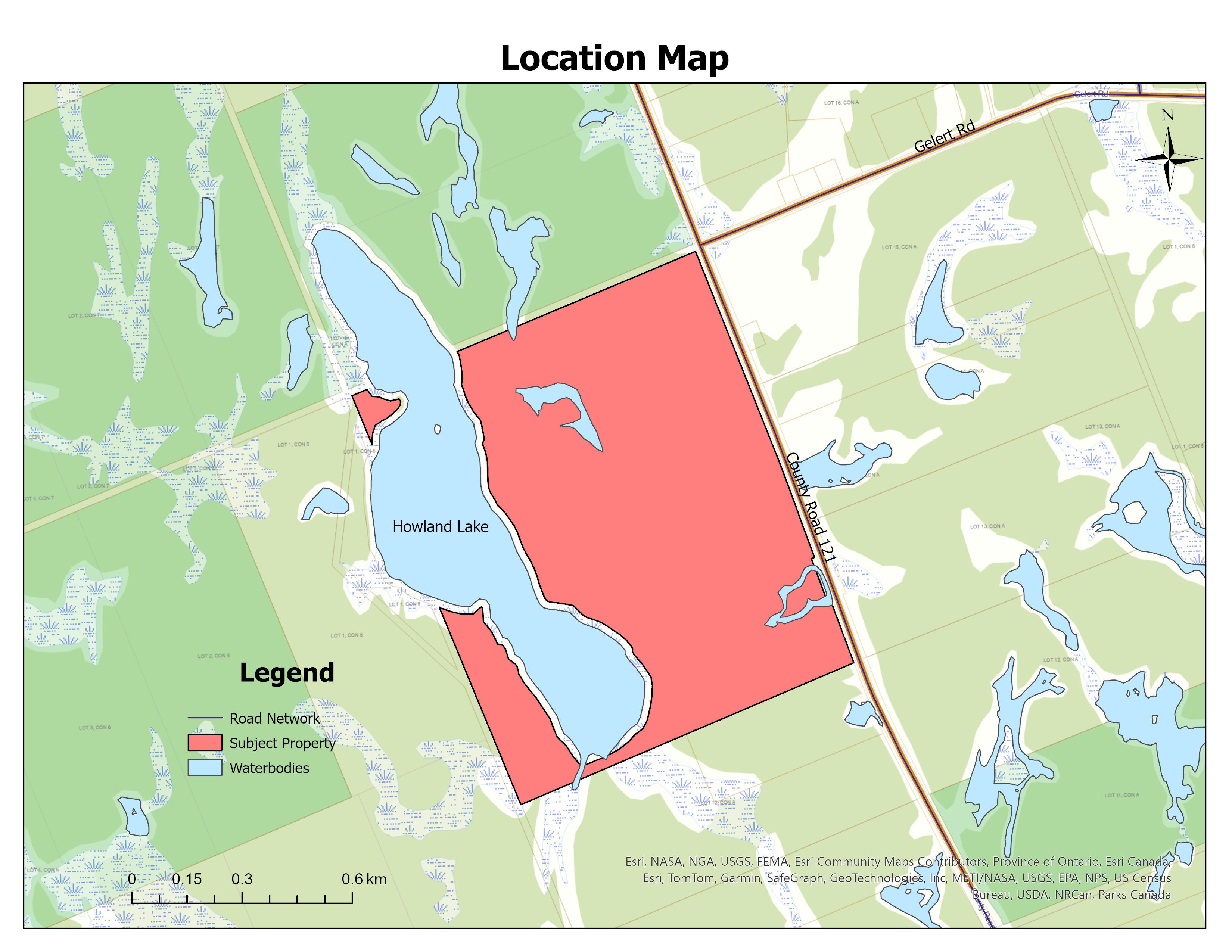 - File No. PLSRA2024075: Part of the original shore road allowance along the shore of Howland Lake, lying in front of 5373 County Road 121, located within Part Lot 14, Concession A, Geographic Township of Lutterworth (Key Map)