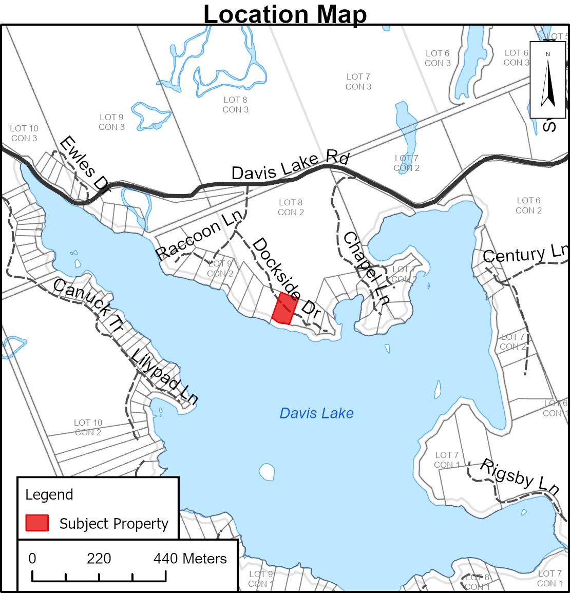 - File No. PLSRA2024047: Part of the original shore road allowance along the shore of Davis Lake lying in front of parcel having roll number 4616-051-000-19000 on Dockside Drive, located within Part Lot 8, Concession 2, Geographic Township of Lutterworth